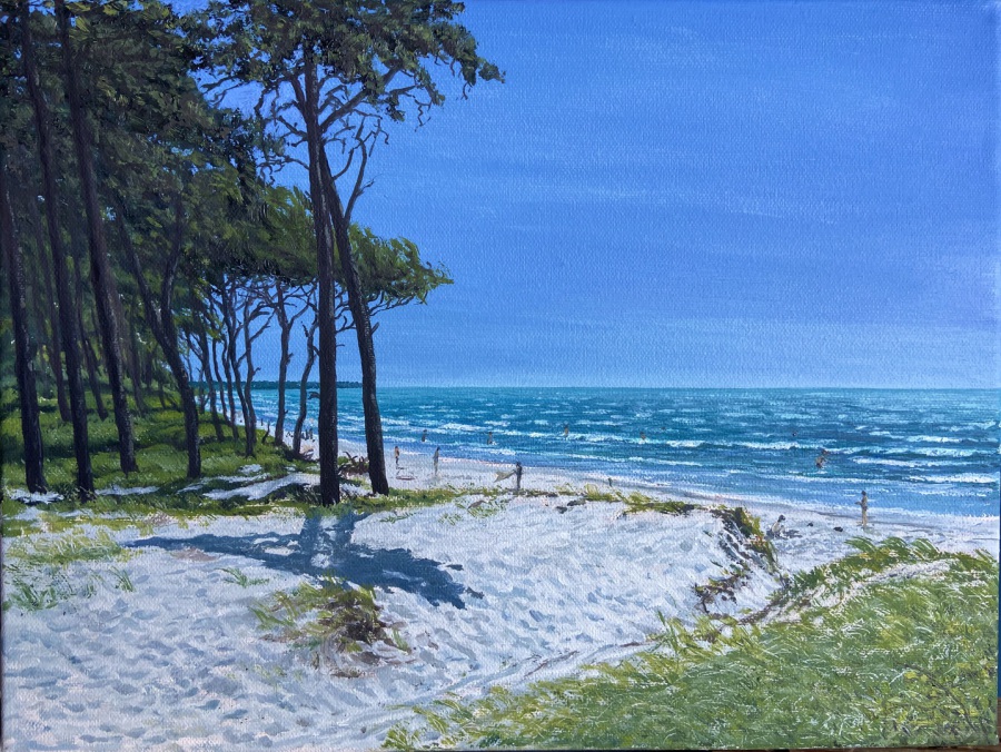 "Sonniger Strand bei Ahrenshoop", 30x40cm, 2021