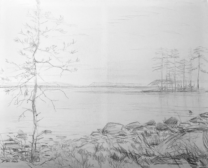 Ich gebe zu, ich habe meine Website etwas vernachlässigt. Und deshalb soll hier nun wieder ein Lebenszeichen erscheinen in Form einer neuen Arbeit. Es ist - wie könnte es anders sein - ein Motiv aus meinem geliebten Schweden. An diesem See haben wir vor 7 Jahren einige wunderbare Wochen im Herbst verbracht. Einige Skizzen hiervon vielen mir neulich beim Aufräumen in die Hände und ich verspürte spontan große Lust, hiervon ein Bild zu machen.