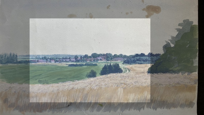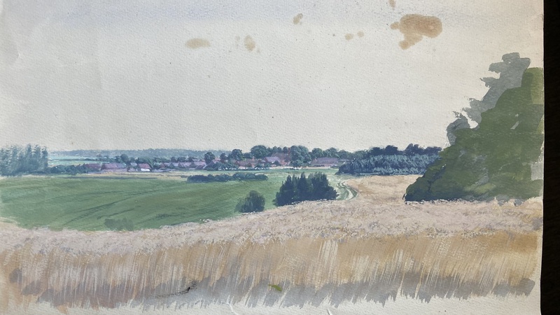 Nach der Skizze hier nun ein erster farbiger Eindruck, es hat etwas gedauert bis ich mit der Stimmung einigermaßen zufrieden war. Aber so stimmt's in etwa. Jetzt kann ich dann nach einer Trocknungspause mit dem Vordergrund weitermachen...