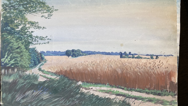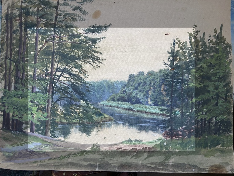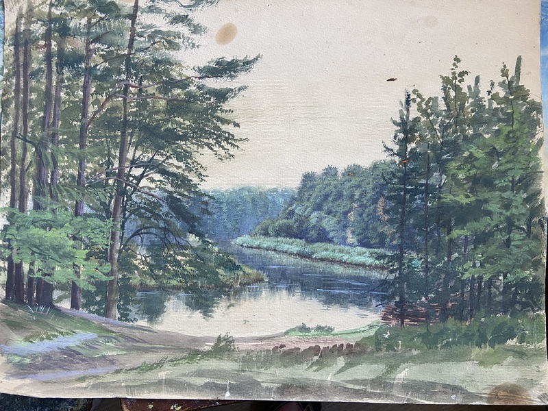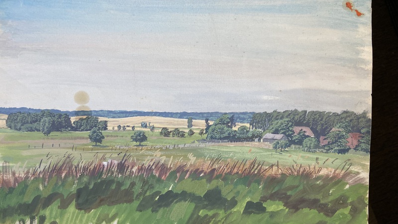 Ich hab am Wochenende mal das recht umfangreiche Material an Zeichnungen und Skizzen meines Vaters durchgesehen. Dabei ist mir aufgefallen, wie viele wunderschöne Sachen darunter sind. Ich möchte sagen, es sind eigentlich fast schon komplette Arbeiten, die wunderschön anzuschauen sind und denen aber gleichzeitig irgendwie auch der Zauber des "flüchtigen Augenblicks" innewohnt; nicht fertig ausgearbeitet - sondern teilweise ganz schnell vor Ort mit wenigen groben Pinselstrichen "hingeworfen". Es ist eigentlich schade, daß sie hier bei mir so im Dunklen lagern, in Vergessenheit geraten und niemand sieht sie. Da hab ich mir gedacht, ich schau mal, ob es vielleicht Interesse an diesen Skizzen gibt. Sie sind so um die 50 Jahre alt und leider auch nicht "makellos", d.h. es waren für meinen Vater halt Teile, die er für eine andere Arbeit angefertigt hatte und die dabei auch Spuren in Form von Flecken und Knicken u.ä. hinterlassen hat. Ich will hier zunächst einmal 5 farbige Skizzen vorstellen. Von denen beabsichtige ich Ausschnitte durch große gerahmte Passepartouts zu zeigen. Die 5 hier vorgestellten Motive sind alle aus der Gegend um Rutenberg/Lychen aus den 70er Jahren.