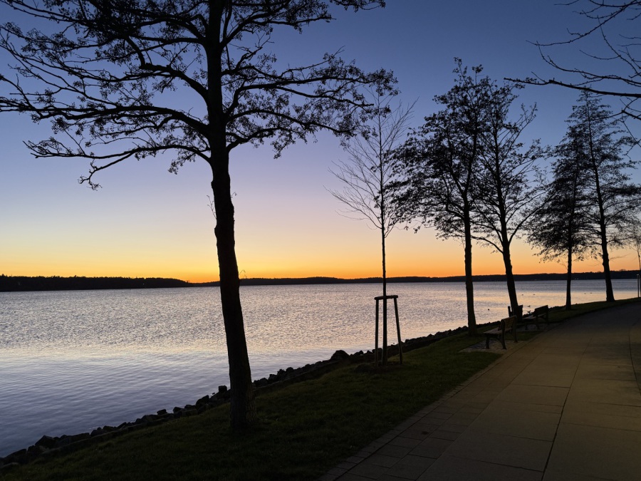 Es ist eine Abendstimmung, die Sonne steht schon sehr tief über dem Horizont; ich stehe an diesem großen weiten See und um mich herum ist nur das leise Rscheln des Schilfes und die Stille der weiten Wälder....